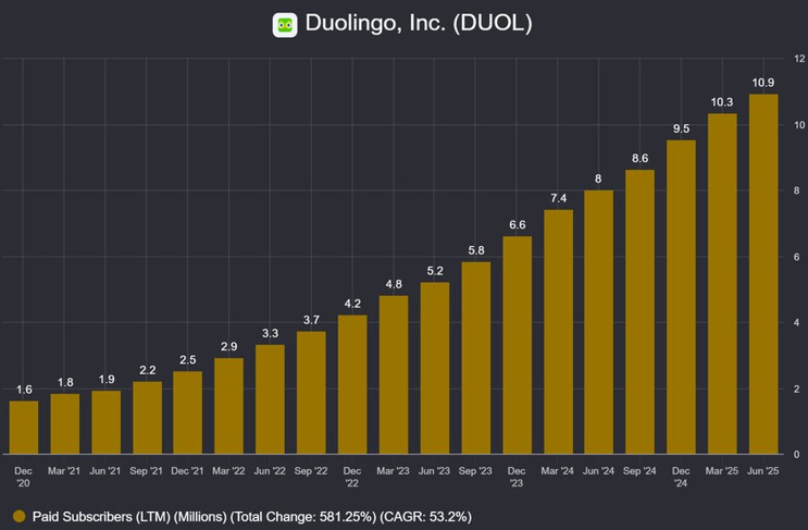 Eso es lo que lo hace tan interesante. No solo se apuesta al aprendizaje de idiomas, sino también a si $DUOL puede cambiar el comportamiento humano a gran escala. Ese es un reto mucho más difícil que conseguir que alguien vea el siguiente episodio o escuche la siguiente canción.