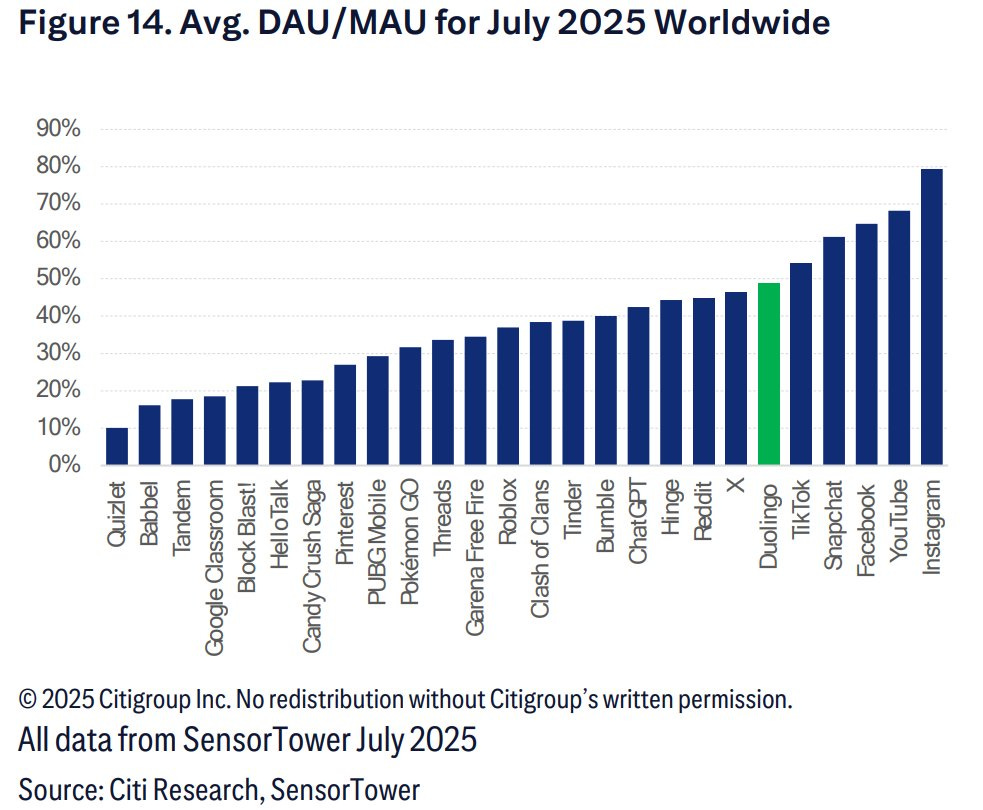 La mitad de los usuarios de Duolingo abren la app diariamente, por encima de apps tipo Clash of Clans, apps de citas o incluso ChatGPT.