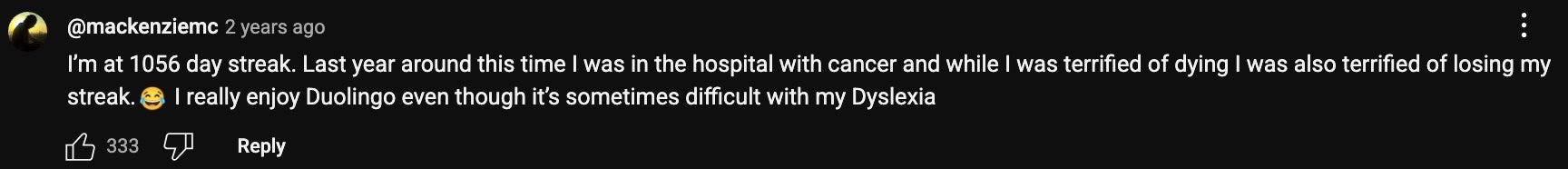 Duolingo es un JUEGO que proporciona a las personas dosis continuas de dopamina y, al mismo tiempo, les vende la ilusión de que están haciendo algo positivo (aprendiendo) en lugar de pasar el tiempo en Instagram o Netflix.