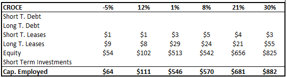 Con un CAPEX tan bajo, sin hacer M&A y un Working Capital tan negativo, su capital invertido se vuelve negativo y, por consiguiente, su ROIC. Es por eso que prefiero usar el CROCE (un ROCE, pero usando el FCF como numerador en lugar del NOPAT). Al igual que el FCF, también aumenta de manera exponencial.