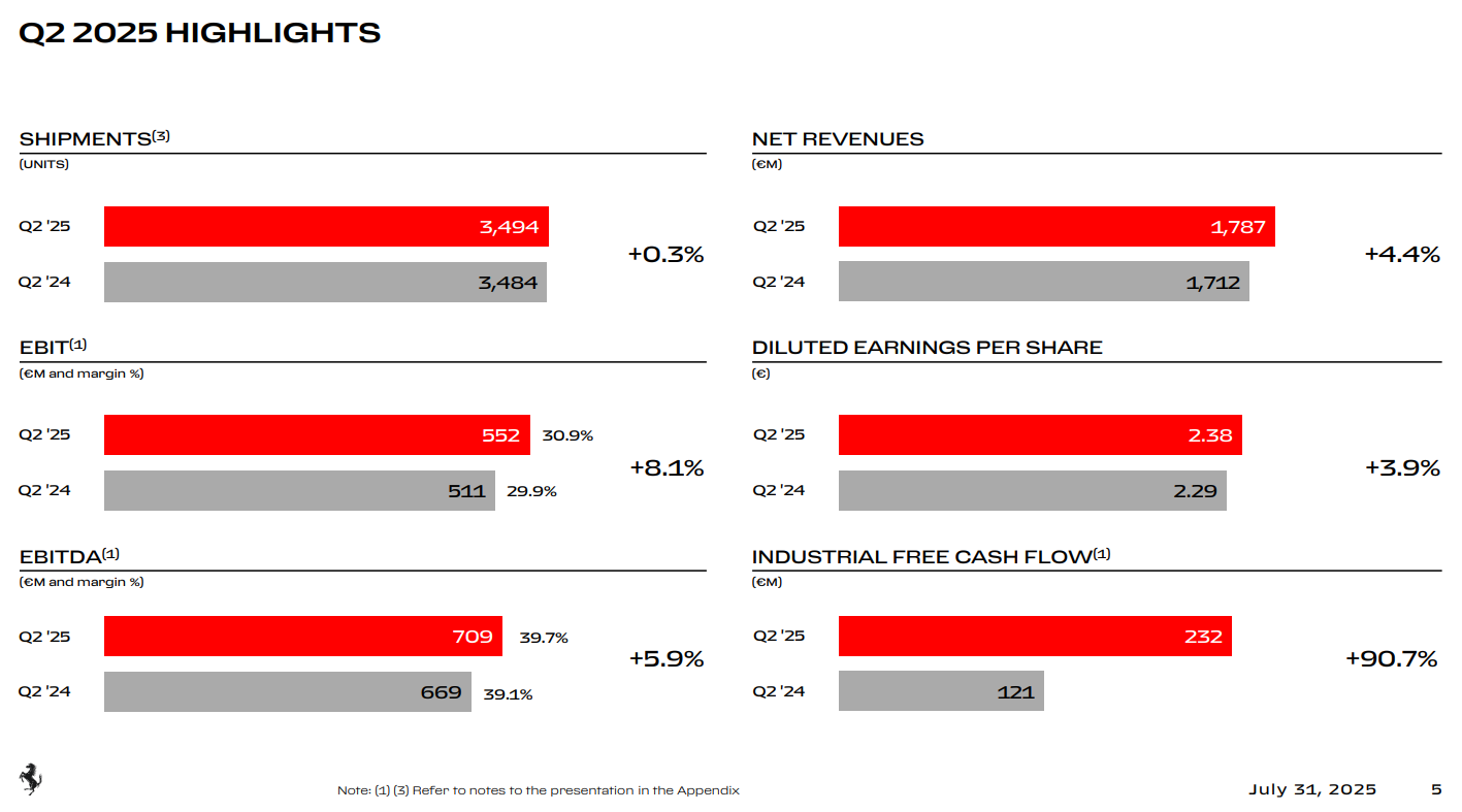 No han notado cancelaciones significativas por tarifas o macro, aunque mencionan cierto efecto de "esperar y ver" en algunas regiones. Su libro de pedidos sigue fuerte, cubriendo ya hasta 2027, incluso sin contar los modelos lanzados recientemente como el Ferrari Amalfi o los 296 Speciale.