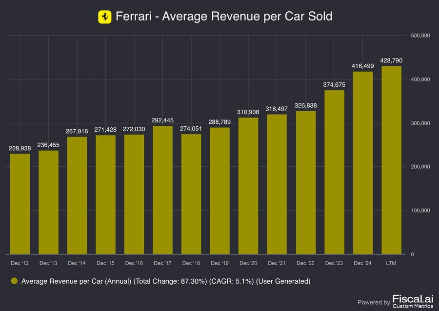 Así ha evolucionado el precio del coche medio vendido por Ferrari.