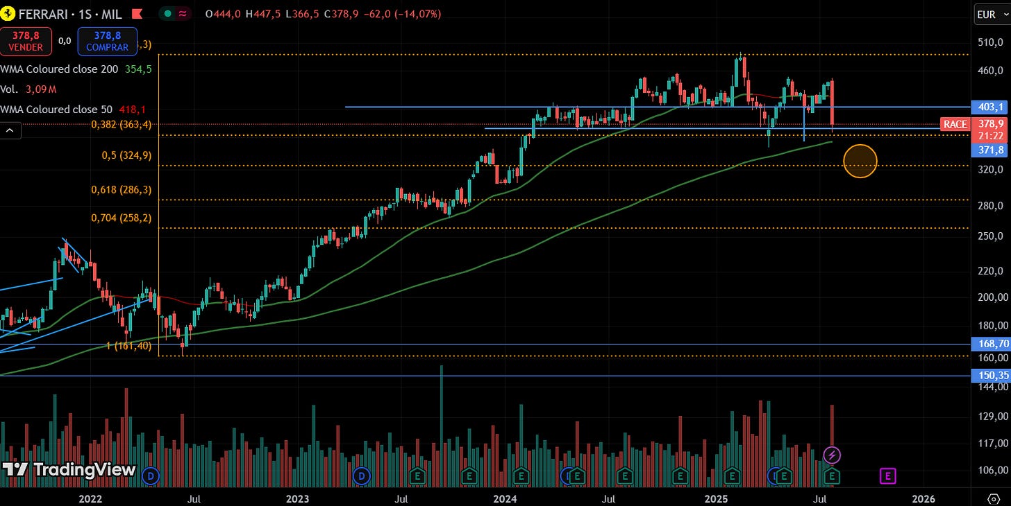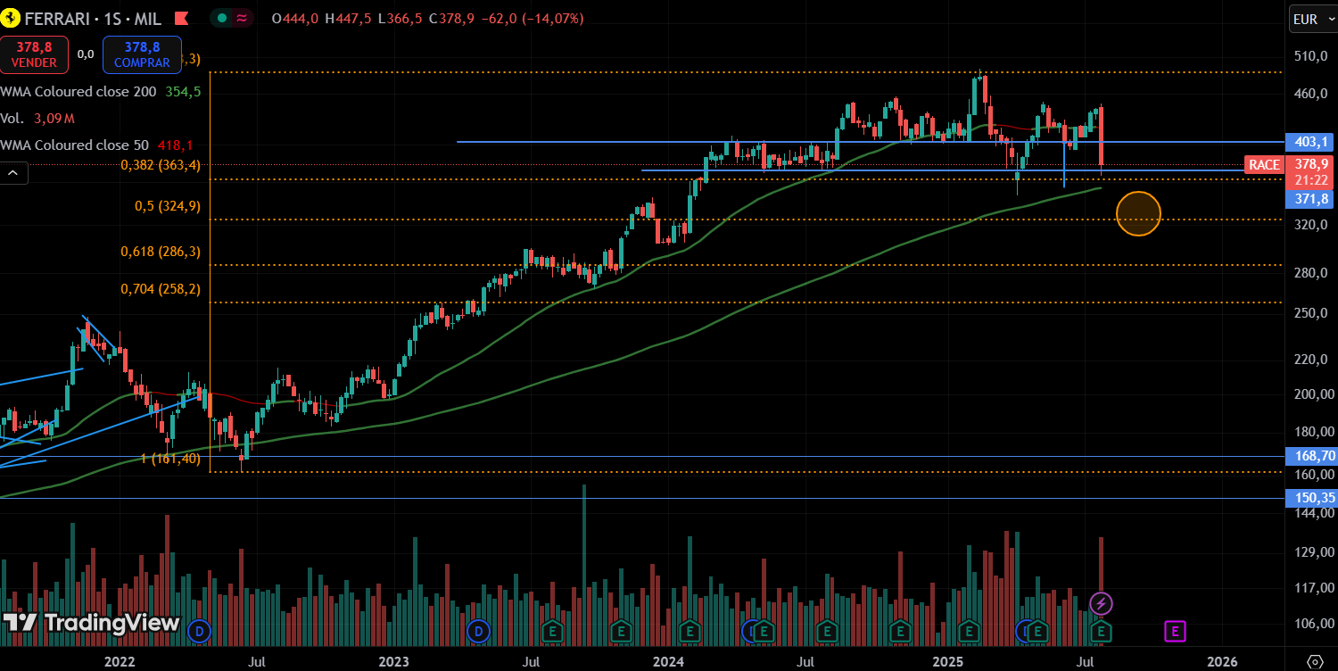 En caso de perderlo, el círculo naranja es el precio comentado del -34% desde máximos, que coincide con un soporte intermedio.